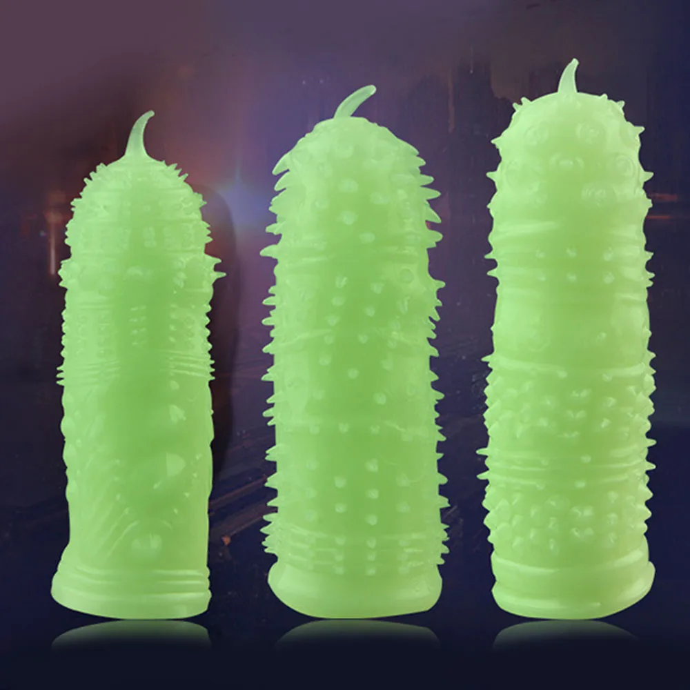 Best Offer Adult Condom with thorn Stimulate G-point Sexy Luminous Condoms Reusable Realistic Permanent Sex To | for Adult Sex Toys Men Nozzle on Penis Dick Extensions condom Penis Sleeve Male Enlargement Delay Spray Massager Cock Ring Cover