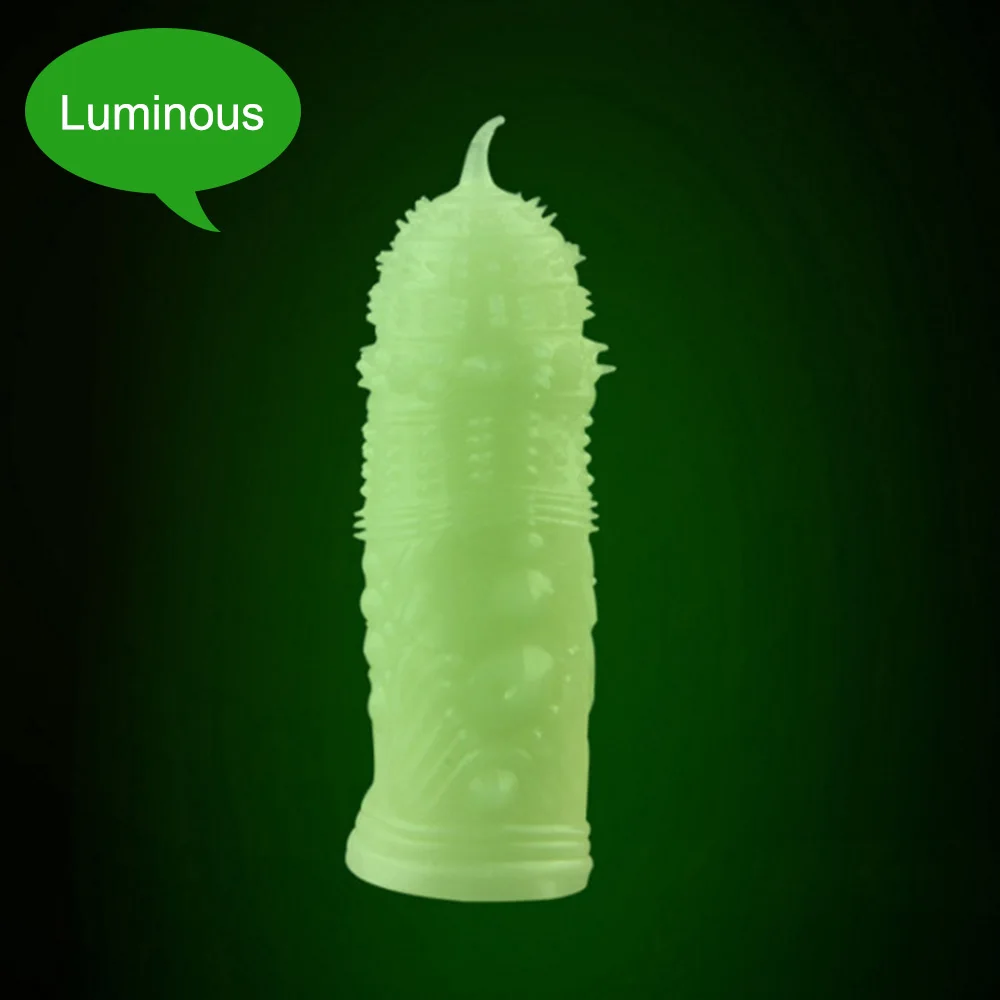 On sale Adult Condom with thorn Stimulate G-point Sexy Luminous Condoms Reusable Realistic Permanent Sex To